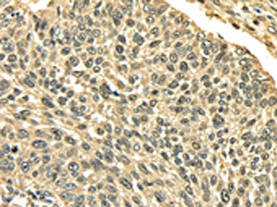 The image on the left is immunohistochemistry of paraffin-embedded Human lung cancer tissue using CSB-PA077536(PLIN3 Antibody) at dilution 1/35, on the right is treated with fusion protein. (Original magnification: ×200)