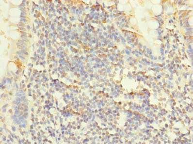 Immunohistochemistry of paraffin-embedded human small intestine tissue using CSB-PA018416LA01HU at dilution of 1:100