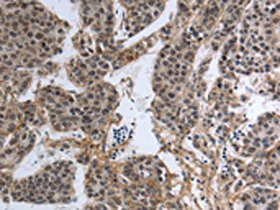 The image on the left is immunohistochemistry of paraffin-embedded Human lung cancer tissue using CSB-PA808697(PMS2 Antibody) at dilution 1/30, on the right is treated with synthetic peptide. (Original magnification: ×200)