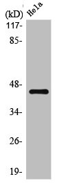 • Western Blot analysis of HELA 293 cells using Oct-3/4 Polyclonal Antibody