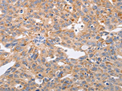 • The image on the left is immunohistochemistry of paraffin-embedded Human ovarian cancer tissue using CSB-PA559752(PPP1CB Antibody) at dilution 1/40, on the right is treated with fusion protein. (Original magnification: ×200)