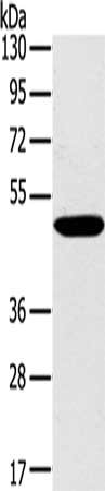 • Gel: 8%SDS-PAGE, Lysate: 40 μg, Lane: Huvec cells, Primary antibody: CSB-PA088329(PPP2R3C Antibody) at dilution 1/400, Secondary antibody: Goat anti rabbit IgG at 1/8000 dilution, Exposure time: 5 seconds