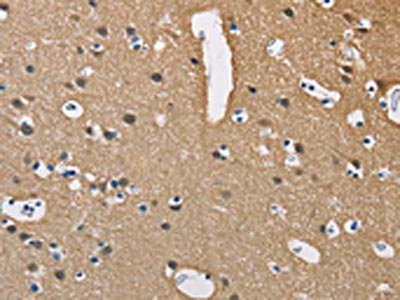 • The image on the left is immunohistochemistry of paraffin-embedded Human brain tissue using CSB-PA943107(PPP3CA Antibody) at dilution 1/40, on the right is treated with fusion protein. (Original magnification: ×200)