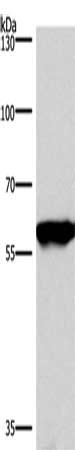 • Gel: 6%SDS-PAGE, Lysate: 40 μg, Lane: Mouse brain tissue, Primary antibody: CSB-PA943107(PPP3CA Antibody) at dilution 1/900, Secondary antibody: Goat anti rabbit IgG at 1/8000 dilution, Exposure time: 1 second