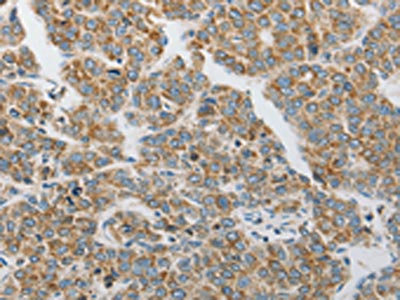 • The image on the left is immunohistochemistry of paraffin-embedded Human liver cancer tissue using CSB-PA912013(PRDX1 Antibody) at dilution 1/20, on the right is treated with synthetic peptide. (Original magnification: ×200)