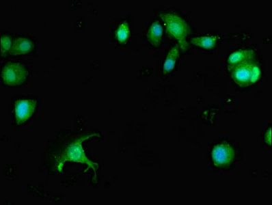 Immunofluorescent analysis of MCF-7 cells using CSB-PA848403LA01HU at dilution of 1:100 and Alexa Fluor 488-congugated AffiniPure Goat Anti-Rabbit IgG(H+L)