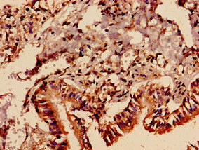 Immunocytochemistry analysis of human lung tissue using CSB-PA848403LA01HU at dilution of 1:100