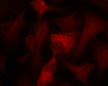 • Immunofluorescence staining of methanol-fixed Hela cells using AMPKa1/AMPKa2(Ab-174/172) Antibody.
