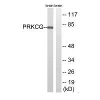 • Western blot analysis of extracts from Rat brain cells, using PRKCG(Ab-655) antibody.