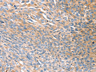 The image on the left is immunohistochemistry of paraffin-embedded Human esophagus cancer tissue using CSB-PA943456(PRSS8 Antibody) at dilution 1/45, on the right is treated with synthetic peptide. (Original magnification: ×200)