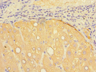 Immunohistochemistry of paraffin-embedded human liver tissue using CSB-PA018846EA01HU at dilution of 1:100