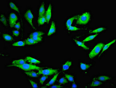 • Immunofluorescent analysis of Hela cells using CSB-PA01335A0Rb at dilution of 1:100 and Alexa Fluor 488-congugated AffiniPure Goat Anti-Rabbit IgG(H+L)