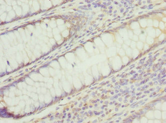 Immunohistochemistry of paraffin-embedded human colon cancer using CSB-PA018913ESR2HU at dilution of 1:100