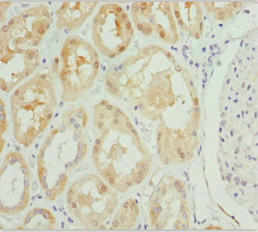 Immunohistochemistry of paraffin-embedded human kidney tissue using CSB-PA018938ESR1HU at dilution of 1:100