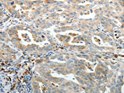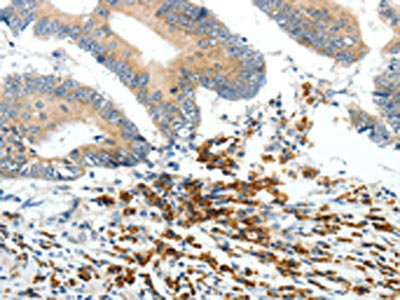 • The image on the left is immunohistochemistry of paraffin-embedded Human colon cancer tissue using CSB-PA087229(PTEN Antibody) at dilution 1/20, on the right is treated with synthetic peptide. (Original magnification: ×200)