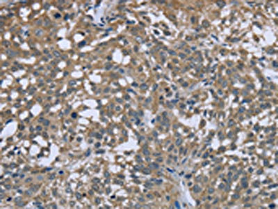The image on the left is immunohistochemistry of paraffin-embedded Human cervical cancer tissue using CSB-PA914875(PTK2B Antibody) at dilution 1/50, on the right is treated with fusion protein. (Original magnification: ×200)