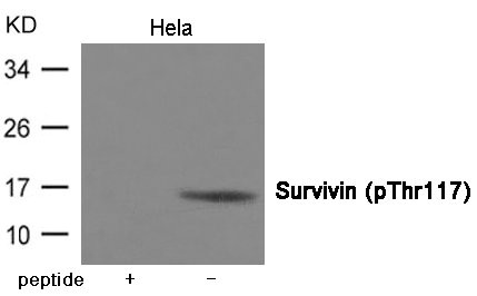 免疫原:Peptide sequence around phosphorylation site of Threonine 117(K-E-T(p)-N-N) derived from Human Survivin.