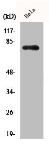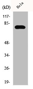 • Western Blot analysis of HELA cells using Phospho-Btk (Y551) Polyclonal Antibody