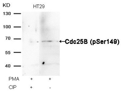 免疫原:Peptide sequence around phosphorylation site of Serine 149 (F-R-S(p)-L-P) derived from Mouse Cdc25B.