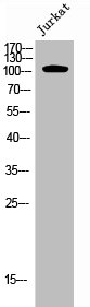 • Western Blot analysis of JK cells using Phospho-EphA7 (Y791) Polyclonal Antibody