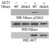 免疫原:Peptide sequence around phosphorylation site of serine 602 (R-A-S(p)-A-I) derived from Human Niban.