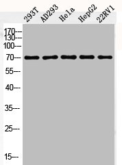 • Western Blot analysis of 293T AD293 HELA HepG2 22RV1 cells using Phospho-c-Fos (S362) Polyclonal Antibody