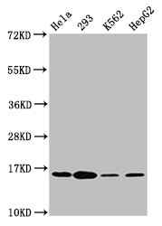 Positive WB detected in: Hela whole cell lysate, 293 whole cell lysate, K562 whole cell lysate, HepG2 whole cell lysate