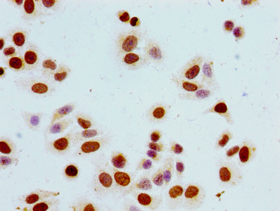 Immunocytochemistry analysis of HepG2 cells using CSB-PA010377PA17phHU at dilution of 1:100