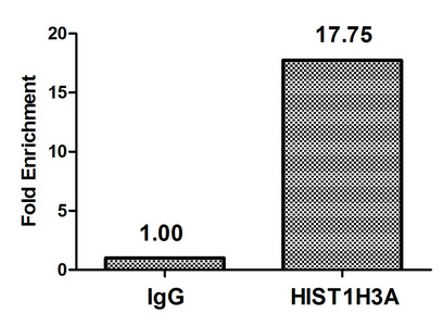 Chromatin Immunoprecipitation Hela (4*106, treated with 100nM calyculin A for 60min) were treated with Micrococcal Nuclease, sonicated, and immunoprecipitated with 5µg anti-HIST1H3A (CSB-PA010418OA03phHU) or a control normal rabbit IgG. The resulting ChIP DNA was quantified using real-time PCR with primers against the β-Globin promoter.
