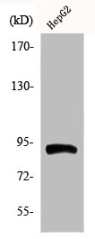 • Western Blot analysis of HepG2 cells using Phospho-HSP90β (S254) Polyclonal Antibody
