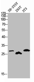 • Western blot analysis of SH-SY5Y 293T 3T3 lysis using Phospho-DREAM (S63) antibody.