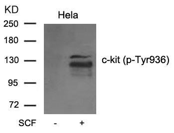 免疫原:Peptide sequence around phosphorylation site of tyrosine 936 (H-I-Y(p)-S-N) derived from Human c-Kit.