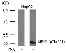 免疫原:Peptide sequence around phosphorylation site of threonine 291 (P-R-T(p)-P-G derived from Human MEK1.