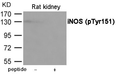 免疫原:Peptide sequence around phosphorylation site of Tyrosine 151(Q-Y-Y(p)-G-S) derived from Human iNOS.