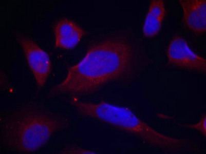 • Immunofluorescence staining of methanol-fixed Hela cells using eNOS(Phospho-Ser1177) Antibody.
