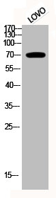 • Western Blot analysis of LOVO cells using Phospho-p70 S6 kinase α (T229) Polyclonal Antibody