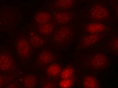 • Immunofluorescence staining of methanol-fixed MCF cells using p70 S6 Kinase(Phospho-Thr421) Antibody.