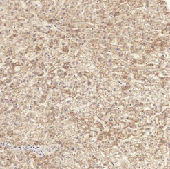 • Immunohistochemical analysis of paraffin-embedded Human-liver tissue. 1,TGFβ RI (phospho Ser165) Polyclonal Antibody was diluted at 1:200(4°C,overnight). 2, Sodium citrate pH 6.0 was used for antibody retrieval(>98°C,20min). 3,Secondary antibody was diluted at 1:200(room temperature, 30min).