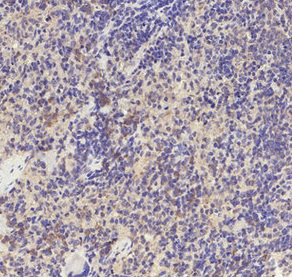 • Immunohistochemical analysis of paraffin-embedded Rat-spleen tissue. 1,TGFβ RI (phospho Ser165) Polyclonal Antibody was diluted at 1:200(4°C,overnight). 2, Sodium citrate pH 6.0 was used for antibody retrieval(>98°C,20min). 3,Secondary antibody was diluted at 1:200(room temperature, 30min).