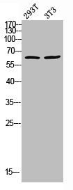 • Western blot analysis of 293T 3T3 lysis using Phospho-TH (S8) antibody.