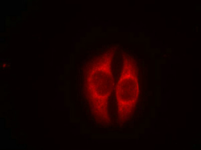 • Immunofluorescence staining of methanol-fixed Hela cells using p53(Phospho-Ser37) Antibody.