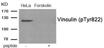 免疫原:Peptide sequence around phosphorylation site of Tyrosine 822 (S-G-Y(p)-R-I) derived from Human Vinculin.