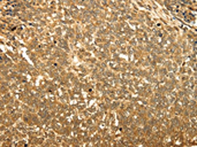 The image on the left is immunohistochemistry of paraffin-embedded Human gastic cancer tissue using CSB-PA050885(RAB26 Antibody) at dilution 1/60, on the right is treated with synthetic peptide. (Original magnification: ×200)