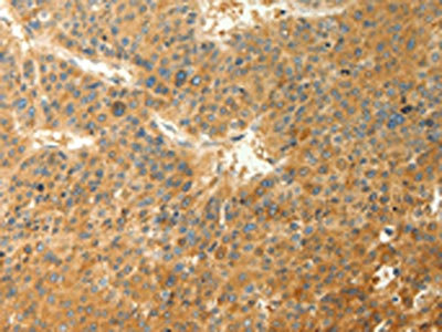 The image on the left is immunohistochemistry of paraffin-embedded Human liver cancer tissue using CSB-PA917220(RAB35 Antibody) at dilution 1/40, on the right is treated with synthetic peptide. (Original magnification: ×200)