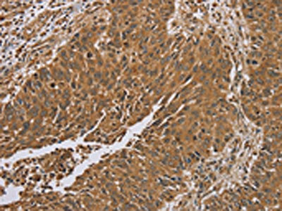 • The image on the left is immunohistochemistry of paraffin-embedded Human lung cancer tissue using CSB-PA790236(RAB8A Antibody) at dilution 1/45, on the right is treated with synthetic peptide. (Original magnification: ×200)