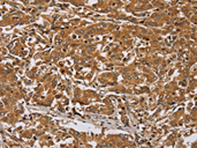 • The image on the left is immunohistochemistry of paraffin-embedded Human liver cancer tissue using CSB-PA790236(RAB8A Antibody) at dilution 1/45, on the right is treated with synthetic peptide. (Original magnification: ×200)