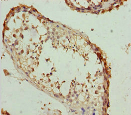 • Immunohistochemistry of paraffin-embedded human testis tissue using CSB-PA884432DSR1HU at dilution of 1:100