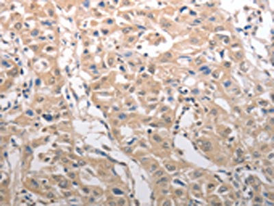 The image on the left is immunohistochemistry of paraffin-embedded Human cervical cancer tissue using CSB-PA279438(RAD52 Antibody) at dilution 1/25, on the right is treated with synthetic peptide. (Original magnification: ×200)