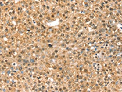 • The image on the left is immunohistochemistry of paraffin-embedded Human liver cancer tissue using CSB-PA141242(RASSF9 Antibody) at dilution 1/40, on the right is treated with fusion protein. (Original magnification: ×200)