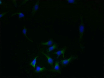 • Immunofluorescent analysis of Hela cells using CSB-PA875682LA01HU at dilution of 1:100 and Alexa Fluor 488-congugated AffiniPure Goat Anti-Rabbit IgG(H+L)